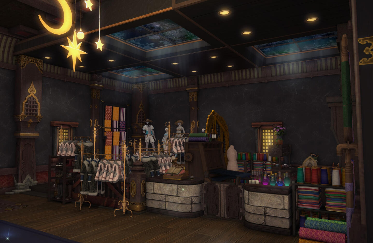 Starlight Tailoring is an immersive RP tailor shop. Customers can peruse the shop, try on already made attire, request any of the services provided, and engage with other customers and the tailor on topics of fashion or otherwise.